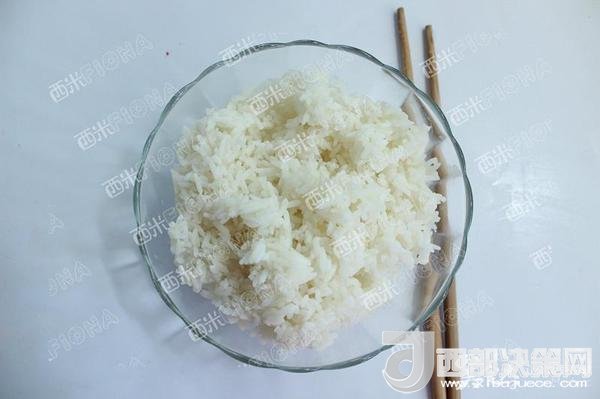 米飯熟了后,立刻打散晾涼,最好是隔夜的,因為經過了一個晚上,米飯里面的水份已被蒸發(fā)的差不多,這個時候炒米飯,就不會結成團。而是粒粒分明。如果是用的厚厚的鐵板旺火快炒,就能發(fā)現(xiàn)飯粒在鐵板上跳動。