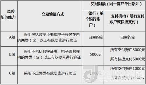動(dòng)態(tài)條碼支付的風(fēng)險(xiǎn)防范能力分級(jí)及交易限額。截圖自中國人民銀行網(wǎng)站