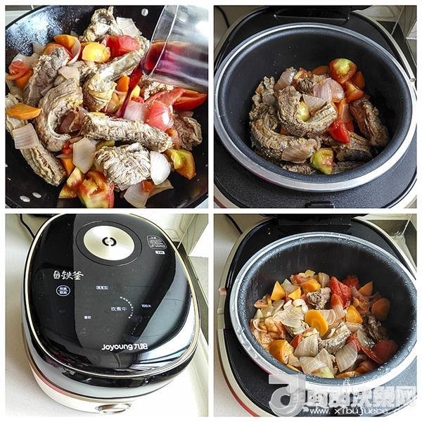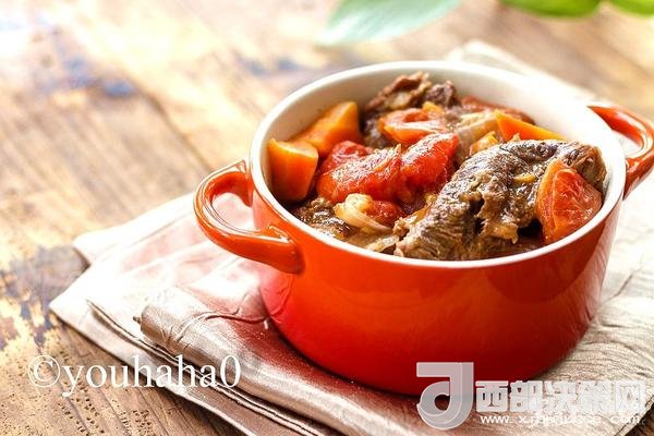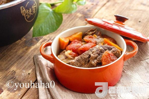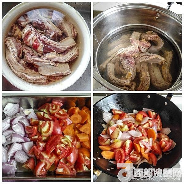 食材:牛腩500克,西紅柿800克,洋蔥一個,胡蘿卜一個,紅酒100克,鹽8克,植物油2湯匙。