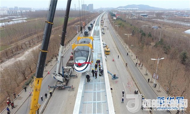 1月3日,在山東省鄒城市,工作人員進(jìn)行旅游云軌“孔孟旅游快線”機(jī)車上梁作業(yè)。當(dāng)日,孔子故里曲阜、孟子故里鄒城之間的云軌“孔孟旅游快線”完成機(jī)車上梁作業(yè)。這條旅游快線串聯(lián)起“三孔”景區(qū)、高鐵曲阜東站和曲阜南站、九龍山景區(qū)、孟廟孟府景區(qū)等。云軌是中國首條自主知識產(chǎn)權(quán)的跨座式單軌列車,類似于“空中小火車”,最高時(shí)速可達(dá)80公里。(田楊 攝)