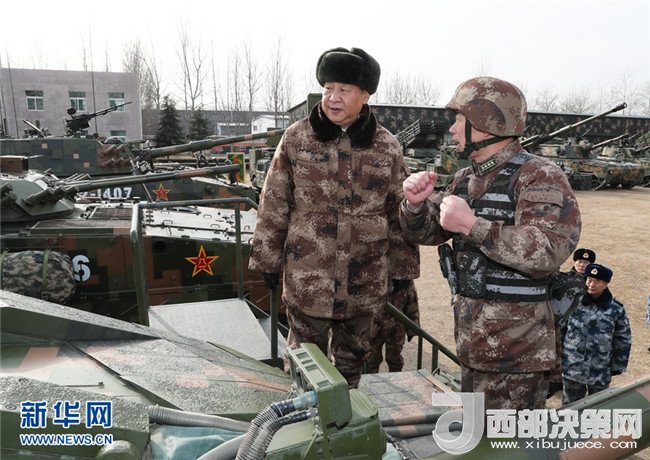 新年伊始,燕趙大地,生機盎然。3日上午10時30分許,習近平來到中部戰(zhàn)區(qū)陸軍某師。他首先察看了部隊武器裝備。數(shù)十臺套數(shù)字化裝備整齊列陣,威風凜凜,習近平邊走邊看,不時駐足詢問。在地面突擊系統(tǒng)裝備前,習近平饒有興致地登上99A坦克。這是我國自主研制的新一代主戰(zhàn)坦克,有“陸戰(zhàn)之王”美譽。在火力打擊系統(tǒng)裝備前,習近平登上紅箭——10導彈發(fā)射車,詳細了解裝備戰(zhàn)技性能。習近平強調(diào),要抓住科技創(chuàng)新這個牛鼻子,把部隊科技含量充分釋放出來,把科技優(yōu)勢轉(zhuǎn)化為能力優(yōu)勢、作戰(zhàn)優(yōu)勢。
