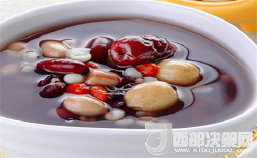 材料:粳米50克,糯米50克,花生30克,紅豆30克,桂圓肉30克,紅棗10顆,枸杞子10克,紅糖50克。
