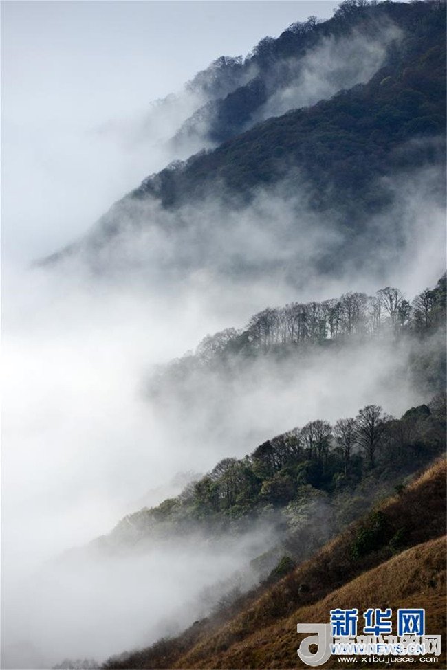 這是1月7日在貴州省黔東南苗嶺國(guó)家地質(zhì)公園拍攝的云海景觀。寒冬時(shí)節(jié),位于貴州省黔東南州的苗嶺國(guó)家地質(zhì)公園出現(xiàn)云海霧凇景觀,原始森林和草場(chǎng)在云海中若隱若現(xiàn),美若畫卷。(楊文斌攝)