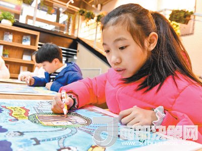 1月14日,在安徽省合肥市瑤海圖書城,孩子們正在用手中的畫筆描繪心中的未來美麗家鄉(xiāng)。