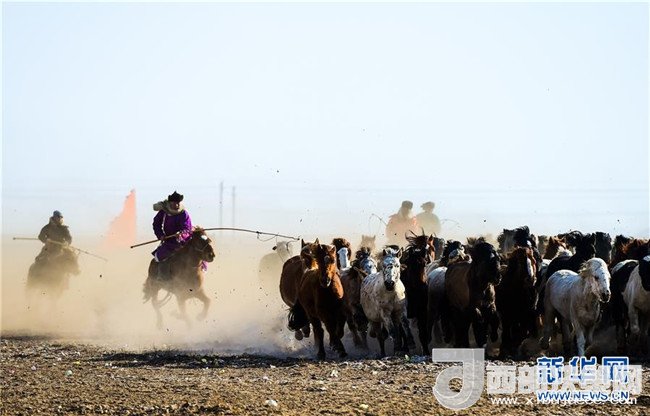 1月16日,在內(nèi)蒙古錫林浩特鳳凰馬場,當(dāng)?shù)啬撩駛冑愸橊劇?br />