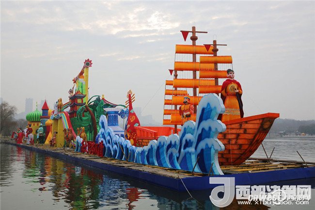 1月22日,記者走進(jìn)大唐芙蓉園,環(huán)芙蓉湖一圈,見(jiàn)2018新春燈會(huì)的大型燈組已基本到位,規(guī)模氣勢(shì)超大唐芙蓉園歷屆燈會(huì)。這組水上燈組濃縮了水陸絲綢之路風(fēng)情。