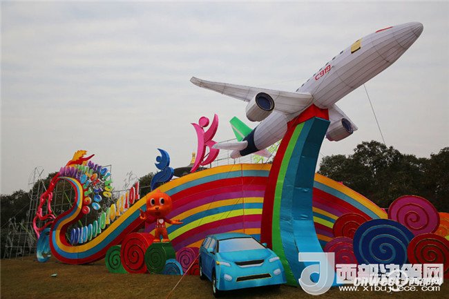 中國(guó)自主設(shè)計(jì)研制的C919國(guó)產(chǎn)大型客機(jī)也做成了彩燈,展示國(guó)家高精尖科技實(shí)力。