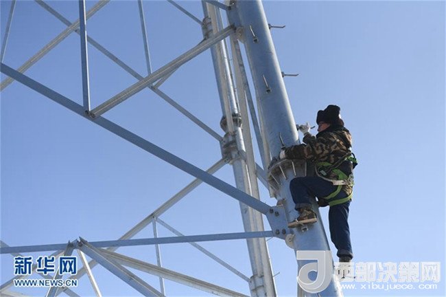 1月26日,國家電網(wǎng)長春供電公司輸電運(yùn)檢室?guī)щ娮鳂I(yè)班班長楊忠武徒手爬上高壓線塔。新華社記者 張楠 攝