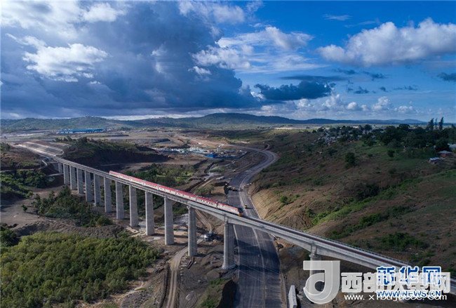 2017年5月12日,列車從肯尼亞蒙內(nèi)鐵路沿線的馬澤拉斯鐵路大橋上駛過。蒙內(nèi)鐵路連接肯尼亞首都內(nèi)羅畢和東非第一大港蒙巴薩,全長約480公里,是一條采用中國標準、中國技術、中國裝備建造的現(xiàn)代化鐵路。記者陳誠攝