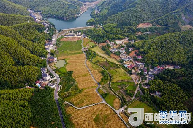 俯瞰浙江省安吉縣上墅鄉(xiāng)劉家塘村的美麗鄉(xiāng)村景色(2017年6月8日攝)。安吉縣大力開展美麗鄉(xiāng)村建設(shè),讓青山綠水成為當(dāng)?shù)?ldquo;金名片”。記者張鋮攝