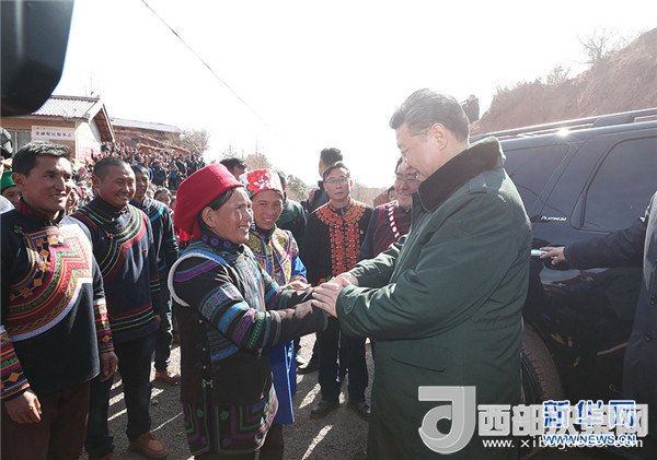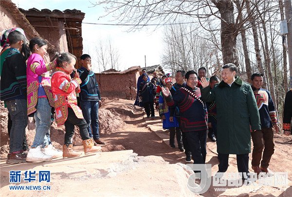 這是習近平在涼山彝族自治州昭覺縣三岔河鄉(xiāng)三河村同鄉(xiāng)親們道別。記者 謝環(huán)馳 攝