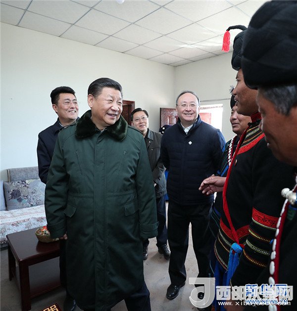 這是習近平在涼山彝族自治州昭覺縣解放鄉(xiāng)火普村貧困戶吉地爾子家的新居了解生產(chǎn)生活情況。記者 鞠鵬 攝