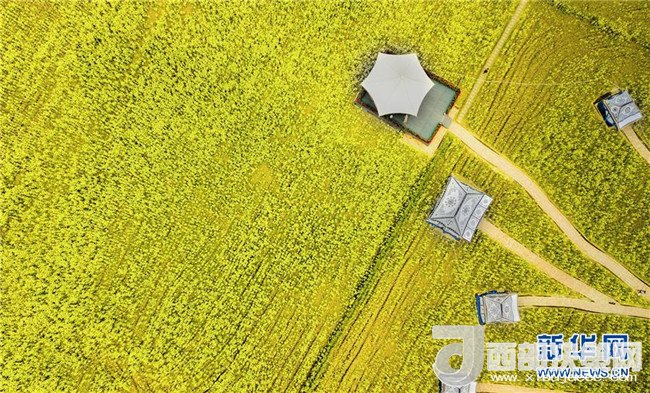 3月9日,在成都崇州市道明鎮(zhèn),服務(wù)游客的帳篷深入到油菜花地里。