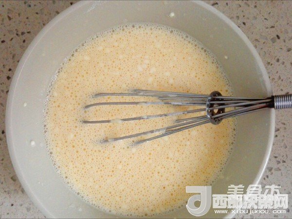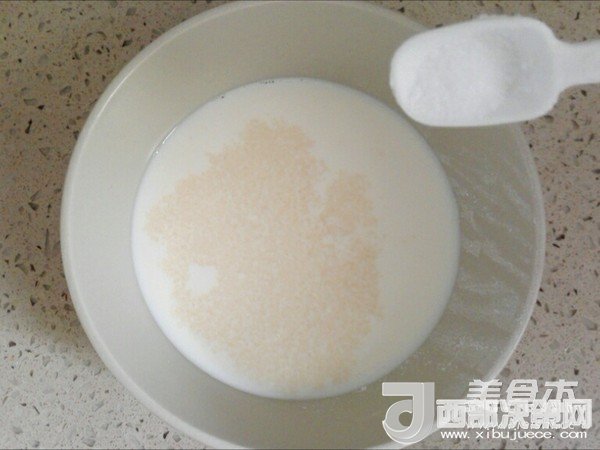 2.牛奶中加入酵母和糖,攪勻