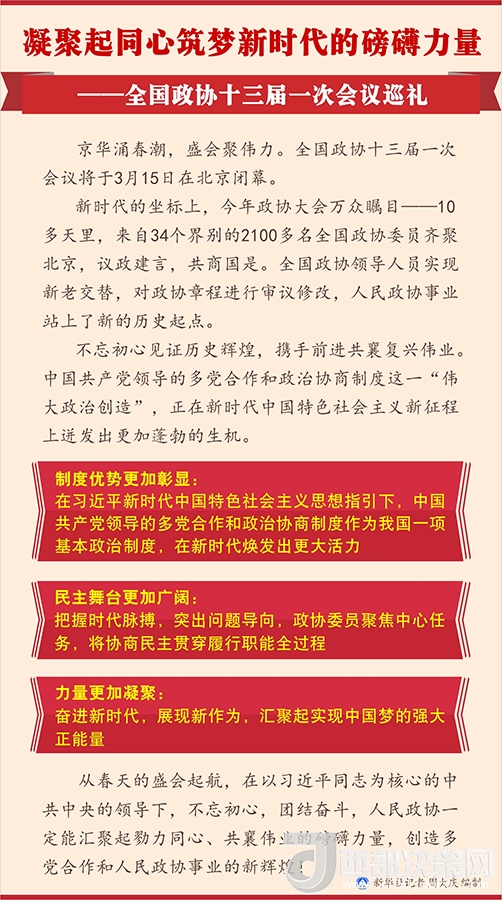京華涌春潮,盛會聚偉力。全國政協(xié)十三屆一次會議將于3月15日在北京閉幕。