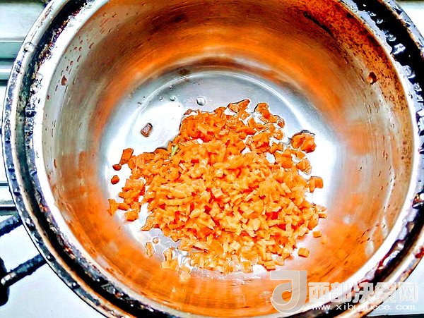 胡蘿卜切小丁,用油炒一下好讓胡蘿卜素出來