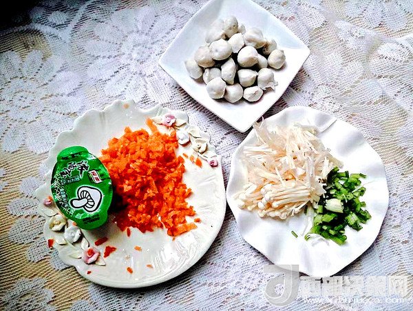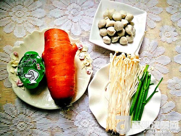 主料:胡蘿卜 半個 金針菇 60克 肉丸 50克 蔥 少許
