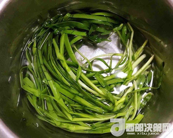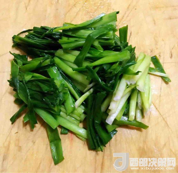 5.韭菜在開水中輕輕焯一下立即放入冷水中過涼