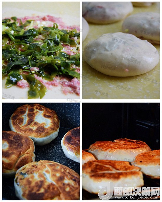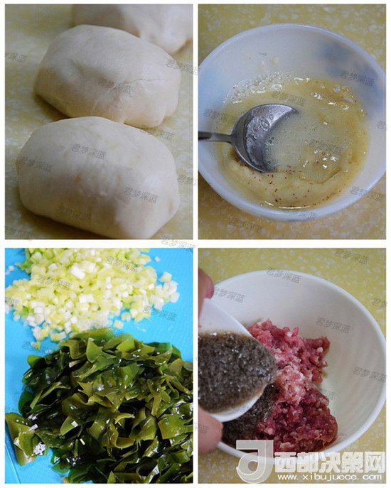 這款餅純屬亂搭型的,原來只是想自己練練手藝做個爬蝦醬味道的肉末餅,打開冰箱的時候發(fā)現有之前剩的新鮮裙帶菜,于是靈機一想,把裙帶菜也加入餅中,這樣讓這款餅更健康。