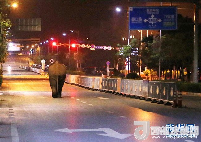 4月7日晚,云南省普洱市思茅區(qū)附近山林一頭野生亞洲象闖入中心城區(qū),不僅大搖大擺地在公路上逆行,還破壞了部分道路交通設(shè)施。當?shù)厣止搽S即對這名“闖入者”進行全程監(jiān)控、實時預(yù)警,避免了“人象沖突”。4月8日凌晨4時許,在現(xiàn)場工作人員的引導下,這頭亞洲象離開城區(qū)返回附近森林。新華社發(fā)(呂禾攝)