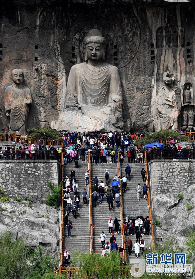 進入4月,河南洛陽龍門石窟景區(qū)逐漸迎來旅游旺季。據(jù)龍門石窟景區(qū)管理處介紹,景區(qū)每天迎來中外游客超萬人次。 新華社記者 朱祥 攝