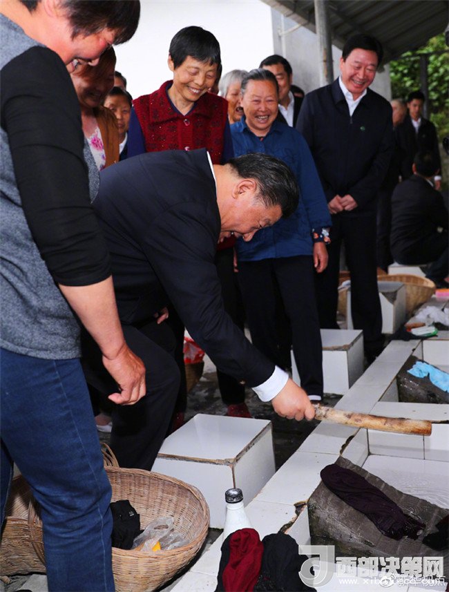 正在村里洗衣服的幾位村民告訴總書記,過去是在江邊洗衣服,現(xiàn)在村里建起了便民洗衣池,用上了自來水,污水集中處理,既尊重了生活習(xí)慣又很環(huán)保。總書記接過洗衣用的棒槌,俯下身,試著捶打了幾下衣服,說:現(xiàn)在洗衣服也是綠色環(huán)保的了。習(xí)近平說,看見大家日子過得好,我高興!