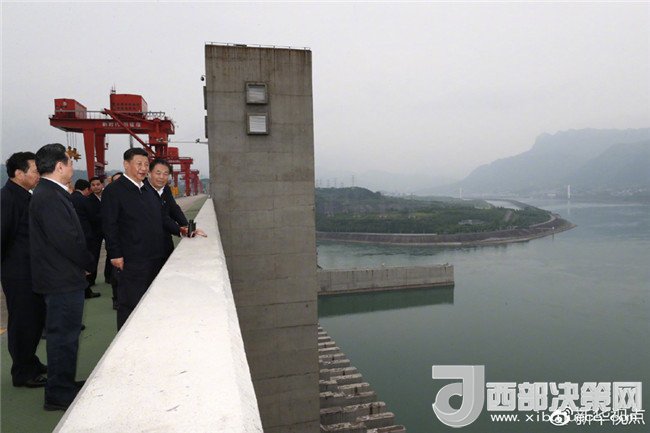 離開許家沖村,習(xí)近平來到三峽大壩,登上壩頂,極目遠(yuǎn)眺長江上下游,詳細(xì)了解三峽工程建設(shè)、發(fā)電、水利、通航、生態(tài)保護(hù)等方面的情況。隨后,前往通航船閘、升船機(jī)和左岸發(fā)電廠實地調(diào)研。