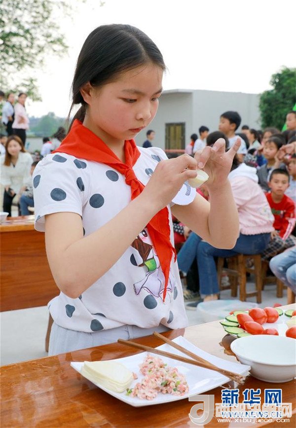 當日,九年一貫制的四川省華鎣市慶合初級中學舉行學生生活自理能力大賽。在該校就讀的小學生和初一、初二年級學生參加了穿衣服、洗漱、疊衣服、炒菜、包餃子等項目的比賽。該校把提高學生生活自理能力作為一項重要的教學工作,旨在引導孩子們養(yǎng)成良好的生活習慣。新華社發(fā)(周松林 攝)