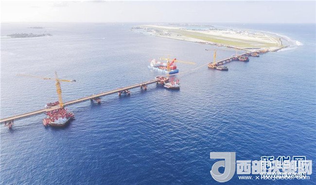 這是2017年7月6日俯拍的馬爾代夫中馬友誼大橋建設(shè)現(xiàn)場(chǎng)。中馬友誼大橋于2016年初正式動(dòng)工,是中馬共建“一帶一路”的重要合作項(xiàng)目。作為馬爾代夫有史以來(lái)第一座大橋,同時(shí)也是印度洋上第一座跨海大橋,中馬友誼大橋連通馬爾代夫首都馬累和機(jī)場(chǎng)島,由橋梁、填海路堤及道路等組成,使用壽命100年。新華社發(fā)