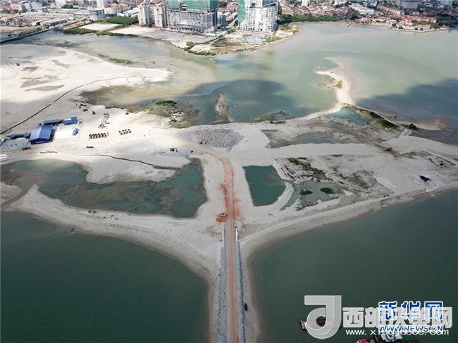 這是2018年2月1日在馬來(lái)西亞馬六甲航拍的馬來(lái)西亞皇京港填海造地施工現(xiàn)場(chǎng)。按照規(guī)劃,皇京港是一個(gè)集生態(tài)旅游、商業(yè)貿(mào)易、地產(chǎn)開(kāi)發(fā)、深水碼頭和臨海工業(yè)園建設(shè)為一體的綜合性項(xiàng)目,中國(guó)電建負(fù)責(zé)吹砂回填、護(hù)岸及防波堤修建等工作。新華社記者劉彤 攝