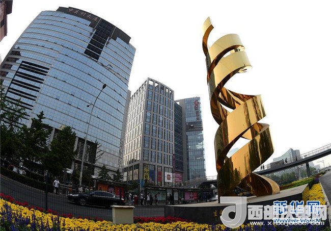 位于中關(guān)村大街、題為《生命》的雕塑(2018年5月14日攝)。