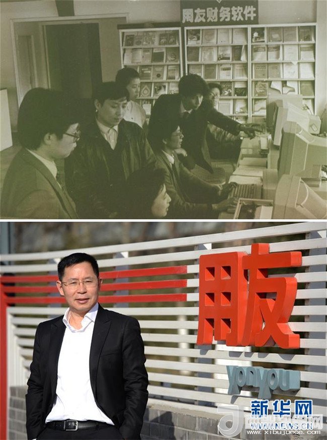 拼版照片:上圖為1989年的用友;下圖為用友網(wǎng)絡(luò)董事長(zhǎng)兼CEO王文京(資料照片)。用友是中關(guān)村第一個(gè)拿到私營(yíng)高新技術(shù)企業(yè)牌照的企業(yè),編號(hào)“SY0001”。從創(chuàng)業(yè)時(shí)2個(gè)人的軟件服務(wù)社,到30年后的1.5萬(wàn)人,用友正從管理軟件公司向?yàn)槠髽I(yè)“賦能”的知名云服務(wù)企業(yè)邁進(jìn)。新華社發(fā)