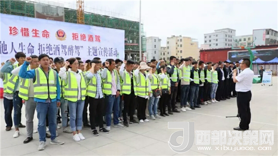 西部決策網(wǎng)——西部大開發(fā)訊(帥華鋒 通訊員 馬存福 蘇娟)認(rèn)真貫徹落實(shí)全省春運(yùn)總結(jié)暨春夏反超速反疲勞反酒駕綜合治理視頻會議精神,縱深推進(jìn)全縣“三反一查”及酒駕宣傳教育活動。5月29日,甘肅西和縣公安局交警大隊(duì)在城區(qū)避難廣場隆重舉行“關(guān)愛他人生命 拒絕酒駕毒駕”主題宣傳活動,進(jìn)一步弘揚(yáng)交通安全法治精神,普及交通安全風(fēng)險防范知識,倡導(dǎo)通行規(guī)則、守法自律、社會責(zé)任、文明交通和公眾道德意識,倡導(dǎo)全民抵制酒駕醉駕違法犯罪行為,形成人人抵制交通違法、人人踐行文明交通、全社會共建共享文明交通的良好風(fēng)尚。西和縣縣委常委、政法委書記嚴(yán)倉一出席活動并講話,交警、運(yùn)管、亨通、萬通、隴運(yùn)西和分公司的負(fù)責(zé)人及駕駛?cè)舜?,福安、祥豐駕校學(xué)員代表共計200余人參加了活動。