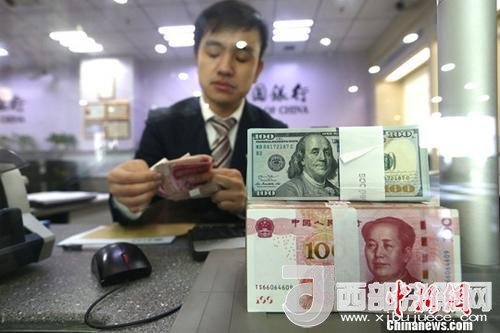 圖為銀行工作人員正在清點(diǎn)貨幣。 中新社記者 張?jiān)?攝