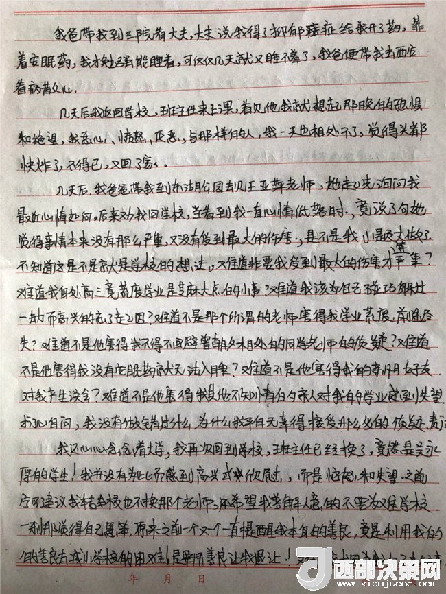 在與李某奕父親了解的過程中得知,雖然父母離異但并未影響她的學(xué)習(xí),不像網(wǎng)友猜測,她是因為父母離異患抑郁癥的。李某奕在校學(xué)習(xí)期間(事發(fā)之前)非??炭啵恢眽粝雸罂夹侣剛髅綄I(yè),且經(jīng)常參加學(xué)校的各種活動并擔(dān)任主持人。但一切就從班主任吳某厚的獸行之后開始改變了。從患病開始她一直堅持要上學(xué),但由于吃藥的緣故她不能正常的上課,加之長期的治療也落下不少功課,最后由于身體和心理原因,她感覺力不從心。中途三次試圖吃大量鎮(zhèn)定類、抑郁類藥物想要結(jié)束自己的生命,都被及時搶救了下來。在她的控訴書中有一段:“明明該像鮮花一樣美好的年齡,我卻不知道為什么人要活著?明明比金銀還寶貝的時間剩了那么一點點,我卻不得不中斷學(xué)習(xí),而是給自己找活下去的理由。終日伴著眼淚入睡,時常被嚇醒,這個世界上沒有什么比自己都不知道自己什么時候發(fā)神經(jīng)尋死,自己努力為自己找活下去的理由更讓人覺得痛苦。而這一切都是我那曾經(jīng)的老師和信任的學(xué)校造成的。”從實際了解和李某奕控訴書中的描寫,她整日活在焦慮、恐懼、痛苦之中,這樣的生活離她的大學(xué)夢想越來越遠,直至破滅。