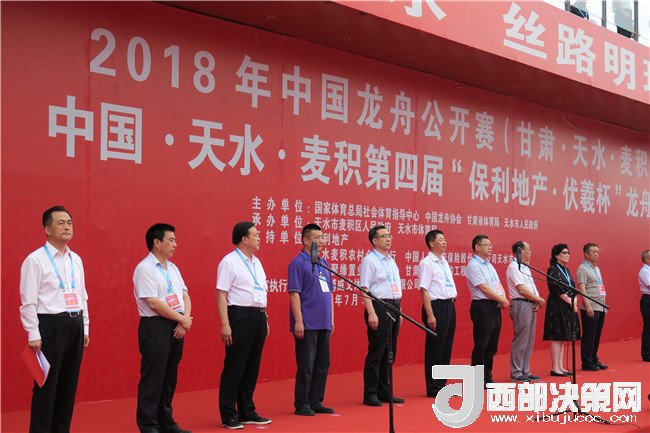 9時整,2018中國龍舟公開賽(天水麥積站)暨保利地產(chǎn)“伏羲杯”第四季龍舟大賽正式拉開序幕,來自全國及甘肅省的近25家代表隊(duì)展開激烈角逐。中國龍舟協(xié)會副主席劉北劍,天水市人大常委會主任、市委秘書長蔣曉強(qiáng),天水市人大常委會原主任、市關(guān)工委主任李世榮,市委常委、常務(wù)副市長趙四輩,市委常委、宣傳部部長張建杰,市人大常委會副主任張克強(qiáng),副市長、市公安局局長馬瑛,市政協(xié)副主席屈光平,市政協(xié)副主席、麥積區(qū)委書記張智明,國家體育總局社會體育指導(dǎo)中心二部主任、國際龍舟協(xié)會副秘書長、亞洲和中國龍舟協(xié)會秘書長余漢橋,省體育局群眾體育處處長武志峰,市人大常委會秘書長楊坤,市政府副秘書長、外事僑務(wù)辦主任張有信,麥積區(qū)人大常委會主任賈應(yīng)珍等出席開幕式,并為龍舟點(diǎn)睛。