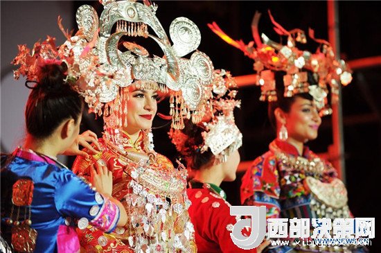 7月2日晚,在貴州省黔東南苗族侗族自治州丹寨縣,一場(chǎng)以苗族婚禮、苗族服飾為主的服飾秀在萬(wàn)達(dá)小鎮(zhèn)舉行。中國(guó)以及來(lái)自喀麥隆、巴西、墨西哥、荷蘭等國(guó)的模特,集中展示民族服飾元素設(shè)計(jì)作品。新華社發(fā)(楊文斌 攝)