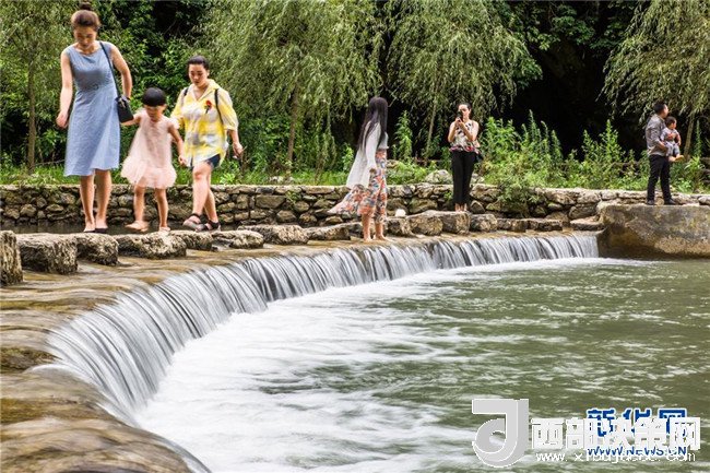 7月11日,在貴州省大方縣黃泥塘鎮(zhèn)烏溪生態(tài)農(nóng)業(yè)避暑園,人們在戲水納涼。