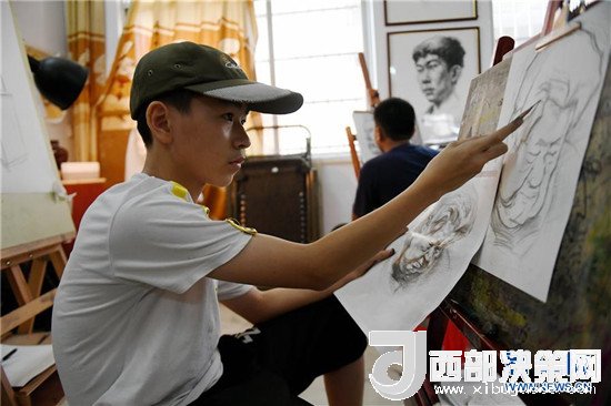 7月12日,在廣西欽州市一家書畫培訓(xùn)中心,一名男孩在練習(xí)素描。