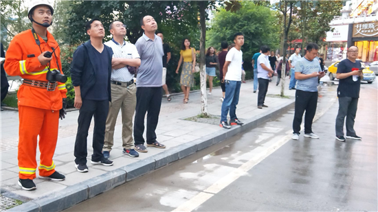 接到報(bào)警后,大隊(duì)及專職隊(duì)迅速出動(dòng)兩輛消防車和10名官兵趕赴現(xiàn)場(chǎng)進(jìn)行處置,到達(dá)現(xiàn)場(chǎng)后,指揮員迅速帶領(lǐng)4名戰(zhàn)斗員立即對(duì)險(xiǎn)情進(jìn)行偵查。通過現(xiàn)場(chǎng)偵查,發(fā)現(xiàn)在距離路面高約50米的山梁上,幾個(gè)石塊直徑約1米大小,由于連續(xù)幾日暴雨,石塊下土層已經(jīng)流失,導(dǎo)致石塊部分懸空,隨時(shí)都有掉落的危險(xiǎn)。此時(shí)已近夜晚,模糊不清的環(huán)境無形中增加現(xiàn)場(chǎng)處置的難度。指揮員下令,分兩組進(jìn)行處置,一組由5名戰(zhàn)斗員跟隨一名熟悉該山道路的群眾一起上山,處置"懸石”險(xiǎn)情,一組與交警部門拉起警戒線隔離過往車輛和行人。由于“懸石”處無路可通,戰(zhàn)斗員在上到山梁后,系上安全繩下降到懸石旁利用事先準(zhǔn)備好的鋼釬對(duì)石塊進(jìn)行起拗,在經(jīng)過兩個(gè)多小時(shí)的作業(yè)后,全部懸石終于掉落路面,使隱患徹底消除。