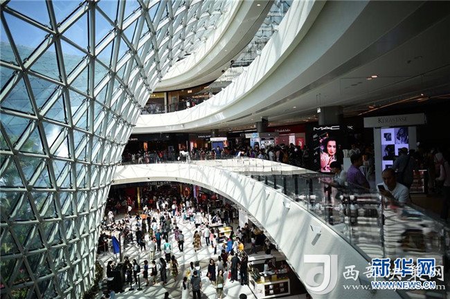 2018年2月18日,顧客在海南三亞海棠灣免稅店內(nèi)游覽、購物。新華社記者 郭程 攝