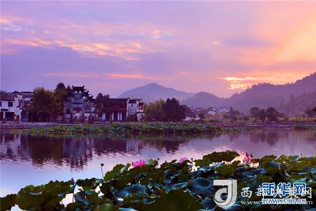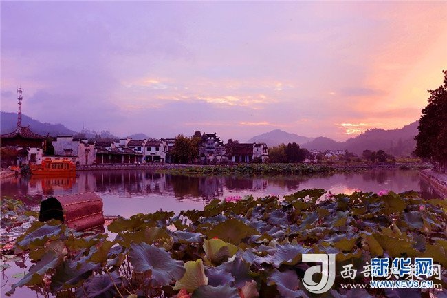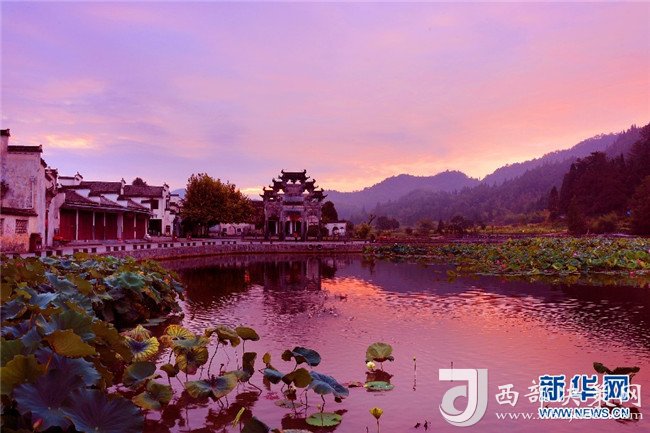 漫天朝霞映古村 半湖荷影入畫(huà)來(lái)
