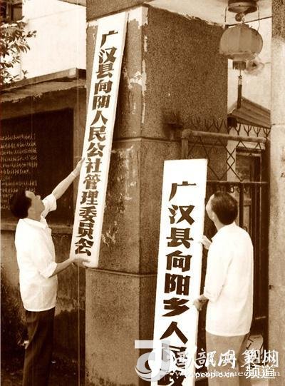 1980年,向陽在全國率先摘下人民公社牌子。(廣漢市委宣傳部供圖)