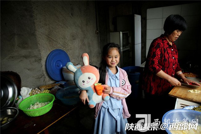 10歲的李蓉也能幫奶奶干些活,幫奶奶洗好菜,奶奶做飯的時(shí)候,看著也沒有自己能干的,李蓉便抱個(gè)布娃娃玩耍。