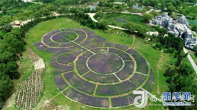 在寧夏石嘴山大武口發(fā)電廠第二排灰場(chǎng)上建起的石嘴山人民公園(7月31日無人機(jī)拍攝)。