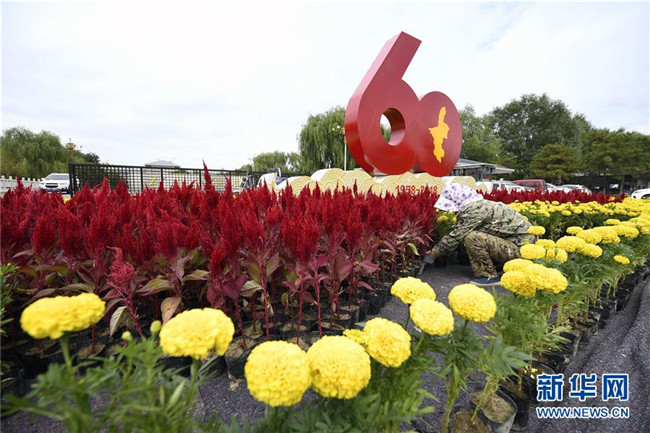 為迎接寧夏回族自治區(qū)成立60周年,寧夏銀川市陸續(xù)在城市主干道、賀蘭山體育場、城市公園等地布置各色花卉及燈籠等裝飾,處處鮮花盛開,洋溢著喜慶的氛圍。記者郭緒雷攝