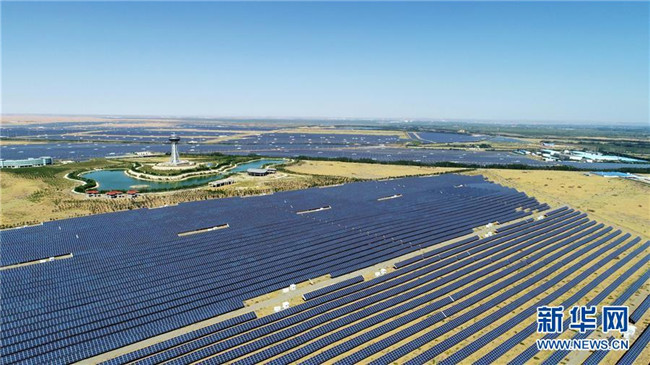 地處寧夏中衛(wèi)市騰格里沙漠邊緣的中衛(wèi)市沙漠光伏產(chǎn)業(yè)園,依托沙漠日照充足、地域廣闊的優(yōu)勢(shì),引進(jìn)太陽能光伏組件制造、設(shè)備生產(chǎn)、光伏電站等企業(yè),形成了“硅料+硅片+光伏組件+光伏發(fā)電”的全產(chǎn)業(yè)鏈發(fā)展規(guī)模,打造沙漠里的太陽能“硅谷”。記者王鵬攝