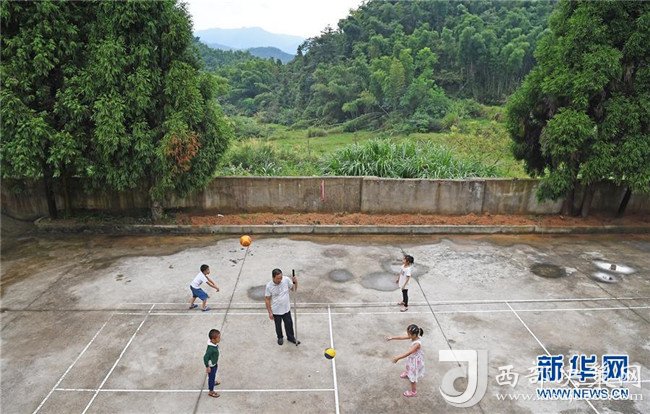 高自仁帶著孩子們在學校的小操場上體育課(9月3日攝)。新華社記者 萬象攝