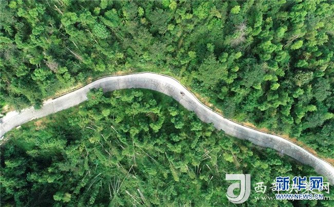 高自仁駕駛助力車行駛在前往梅嶺鎮(zhèn)立新村立新學校的山路上(9月4日無人機拍攝)。新華社記者 彭昭之攝