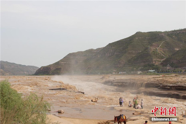 黃河壺口瀑布現(xiàn)“水岸齊平”景色 瀑布群綿延數(shù)百米